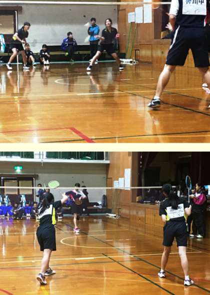 昨日(11月5日)、バドミントン部の予選(団体、個人)が、西賀茂中学校で行われました。午前中に団体戦の予選を3試合行いました。1試合目は神川中学校と対戦し、0−3で負けました。