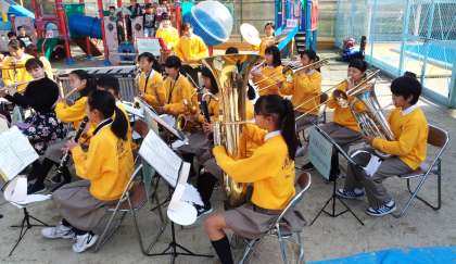 吹奏楽部は昨日(11月5日)、横大路保育園の園児祭りにて演奏してきました。演奏の様子です。