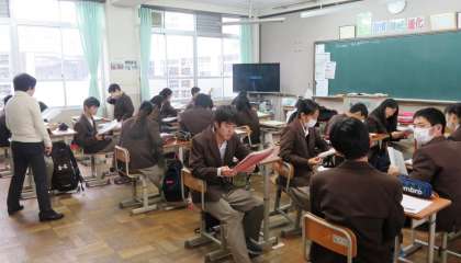 2限の授業の様子です。上から、2組 国語、3組 理科、4組 英語 です。