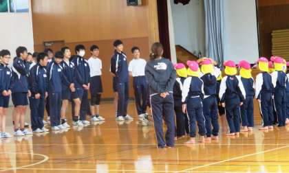 終わりの挨拶の様子です。横大路保育園の皆さん、ありがとうございました。