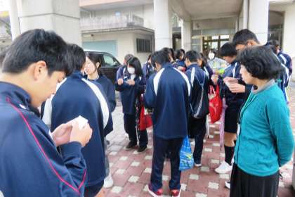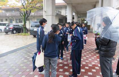 3年3組は横大路保育園にて保育体験を行います。2限のはじめに、名札を貼って保育園に向けて出発しました。