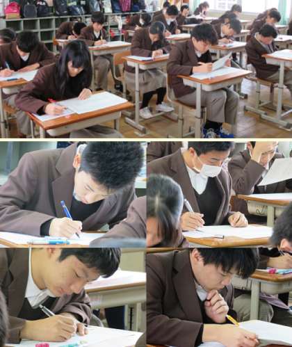 2限の国語のテストの様子です。上から、2組、3組、4組 です。
