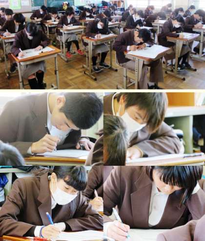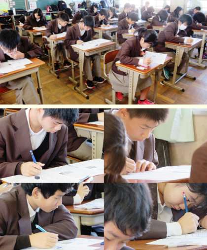 3限の社会のテストの様子です。上から、2組、3組、4組 です。