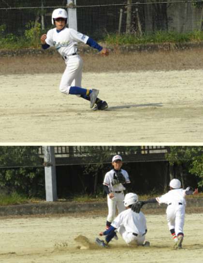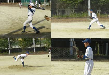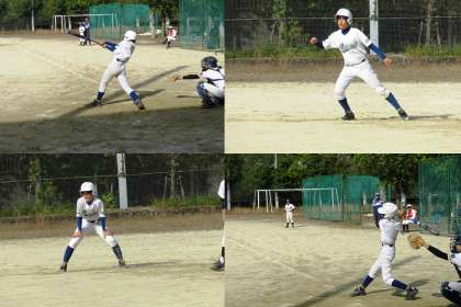 野球部の様子です。合同チーム同士の練習試合をしていました。