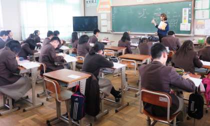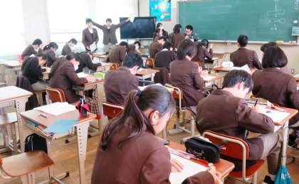 4限の授業の様子です。上から、2組 理科、3組 数学、4組 英語 です。