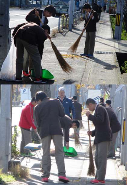 2年生はボランティア活動に向けての準備を進めています。その中の1つの美化活動のグループは今日も美化活動をしてくれていました。