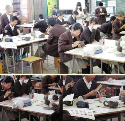 3限の授業の様子です。上から、2組 理科、3組 美術、4組 社会 です。