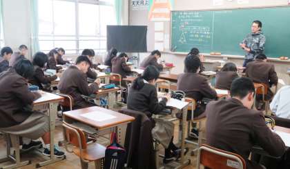 2限の授業の様子です。上から、2組 保健、3組 社会、4組 数学 です。