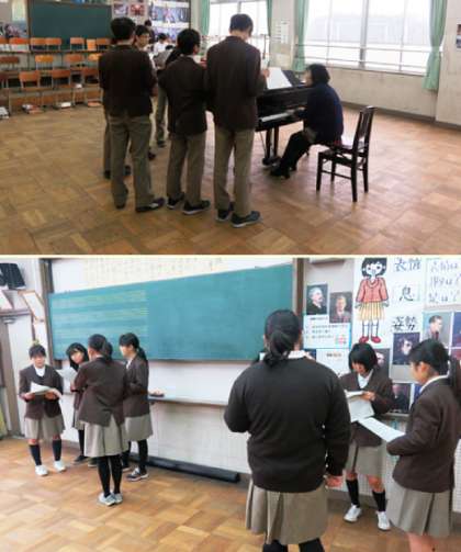 2限の授業の様子です。上から、2組 音楽、3組 社会、4組 英語 です。