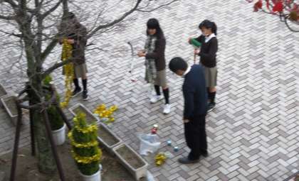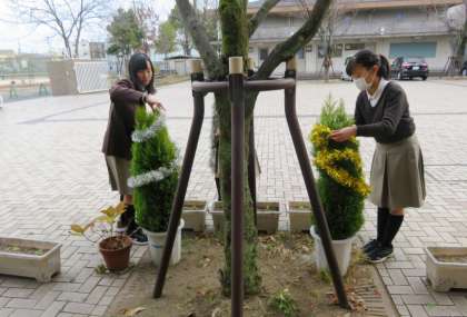 放課後に、生徒会本部のみんなでイルミネーションの飾り付けをしてくれていました。