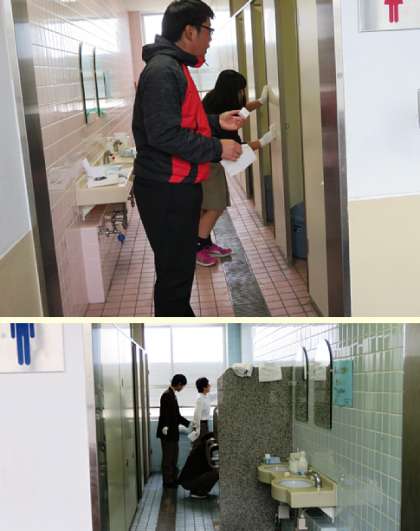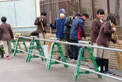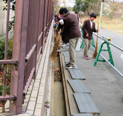 美化活動のグループの様子です。トイレの掃除と正門近辺の溝の掃除をしてくれていました。