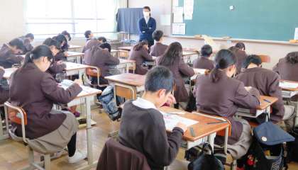 2限の授業の様子です。上から、2組 理科、3組 国語、4組 数学 です。