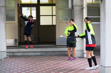 美術部(上)とバドミントン部(中)、ソフトテニス部(下)の様子です。
