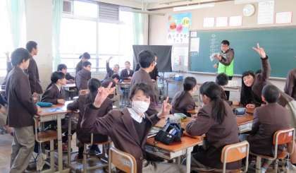 2限の授業の様子です。上から、2組 美術、3組 社会、4組 英語 です。