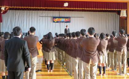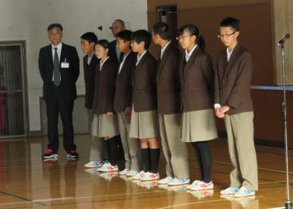本日(12月22日)、冬休み前の全校集会が行われました。校歌斉唱の後、まずは、表彰です。