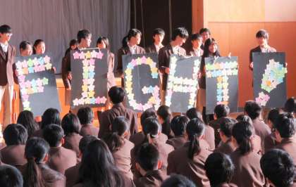 続いて、生徒会長からは、生徒会活動の2期のお礼のあと、1、2年生から3年生へ「受験頑張れメッセージ」が送られました。