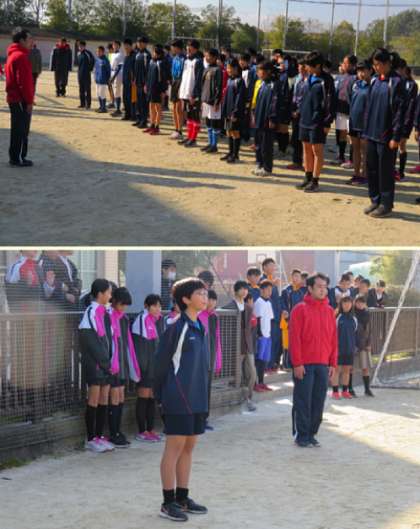 男子9チーム、女子5チームが参加して、第2回部活動対抗駅伝大会が行われました。開会式、準備体操の様子です。