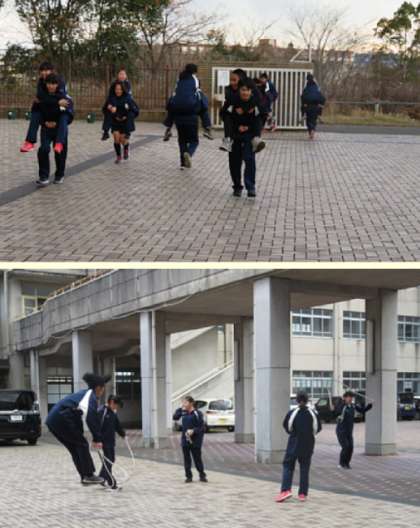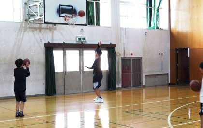 部活動の様子です。上から、バスケットボール部、バレーボール部、ソフトテニス部です。