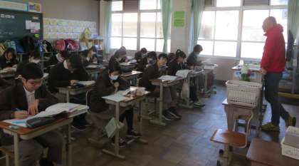 4限の授業の様子です。上から、2組 社会、3組 英語、4組 数学 です。