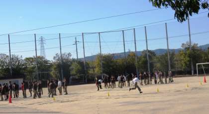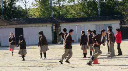 生活向上週間中の体育委員会の取組は、チャレンジ the スポーツを昼休みに行っています。最終日は3年生が学年を2チームに分けて全員リレーをしていました。みんな頑張って走っていました。