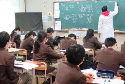 3限の授業の様子です。上から、2組、3組 体育、4組 数学 です。