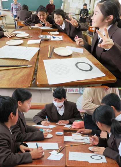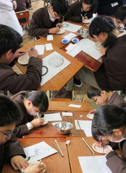 お皿の絵付け体験の様子です。(3組の様子です)