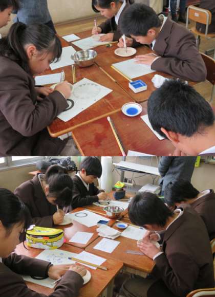 お皿の絵付け体験の様子です。(4組の様子です)