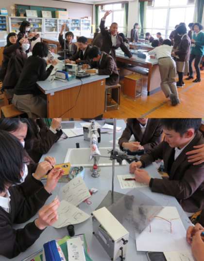 4限の授業の様子です。上から、2組 理科、3組 国語、4組 保健 です。