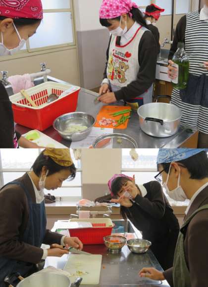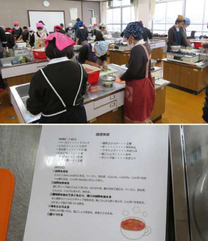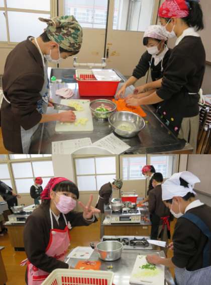 1限の1年3組の家庭科(調理実習)の様子です。