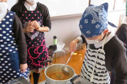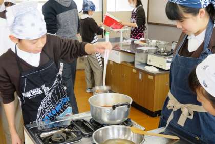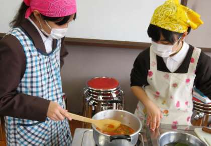 3限の2組の調理実習の様子です。