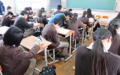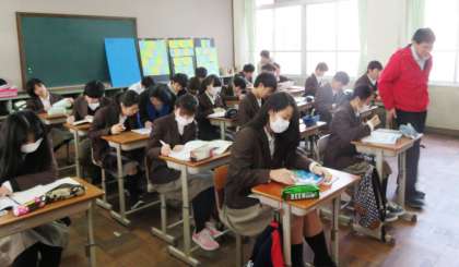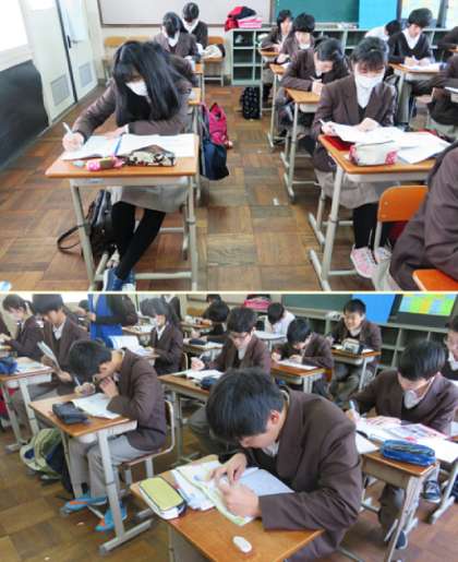 本日(1月20日)、3年生は1月24日から始まる総括テストを前に、土曜学習会が行われました。参加した生徒は真剣に取り組んでいました。
