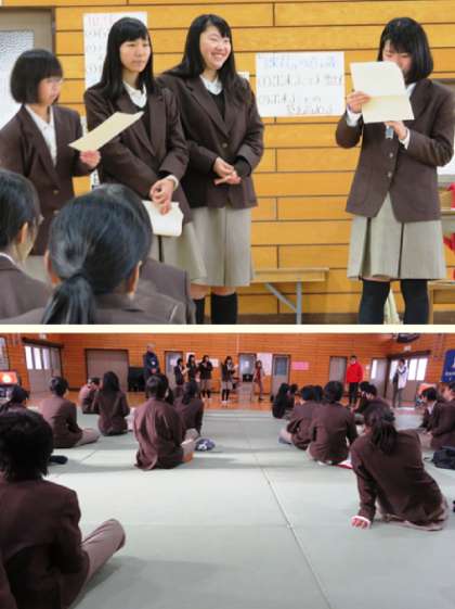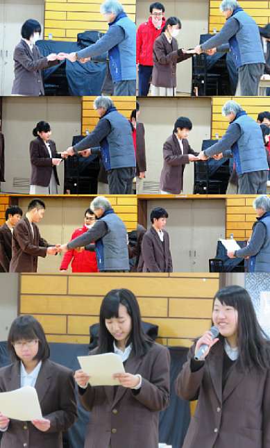 係の生徒から成績発表が行われたあと、個人表彰と1位クラスの表彰が行われました。おめでとうございます。この後に、係の生徒から終わりの挨拶があり、2年生の百人一首大会が終了しました。係の皆さんお疲れ様でした。