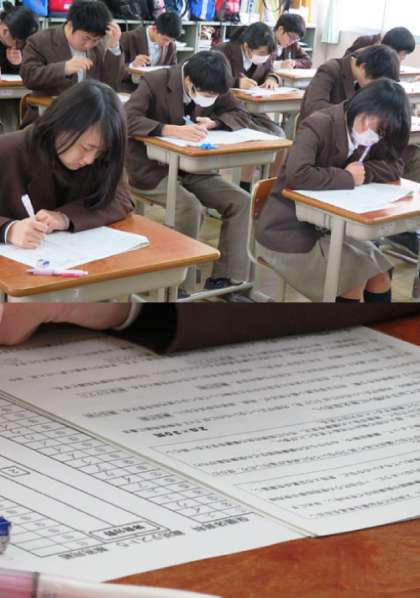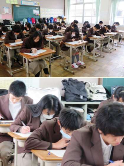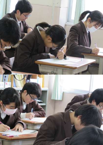 3限の保健体育のテストの様子です。みんな真剣です。2組です。