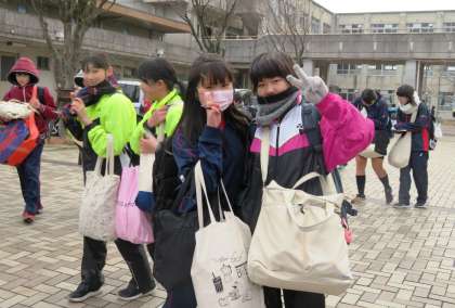 下校の様子です。雪の降る中の下校となりました。