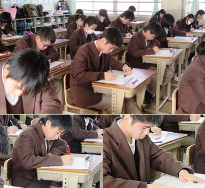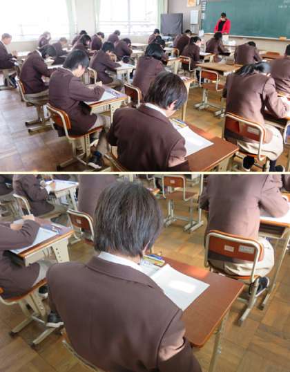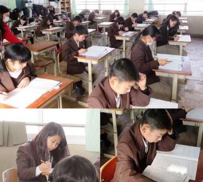 本日、1・2年生は学習確認プログラム(4限から国語、社会、数学)を実施しました。写真は6限の数学の様子です。明日は、2教科(理科、英語)のテストを実施します。
