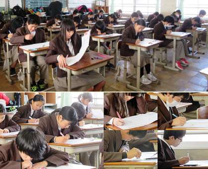 本日の5、6限、昨日に引き続き、学習確認プログラムが行われました。英語のリスニングの関係で、1年生は5限 理科、6限 英語、2年生は5限 英語、6限 理科のテストを実施しました。1年、5限の理科のテストの様子です。