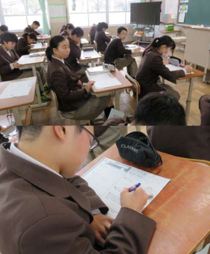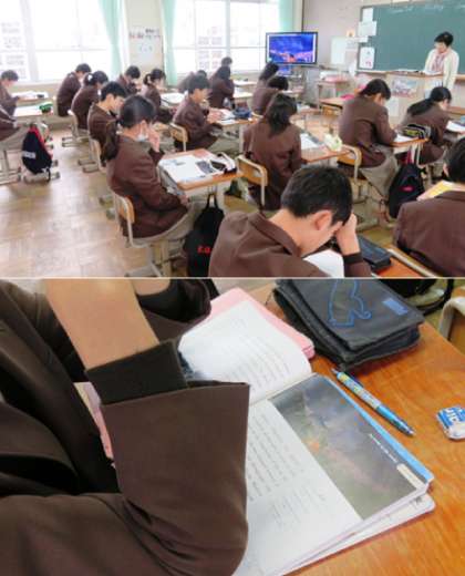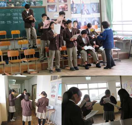 2限の授業の様子です。上から、2組 音楽、3組 数学、4組 英語 です。