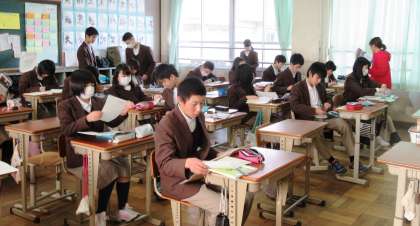 6限終了後、1、2年生はテスト前の学習会をしていました。また、1年4組では回復授業を行っていました。