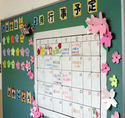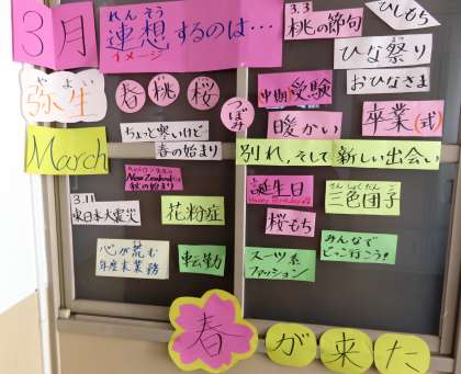 廊下の行事予定と図書室前の掲示物が新しくなりました。