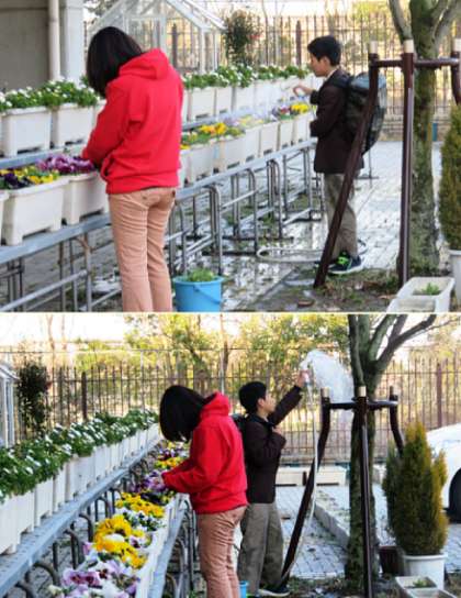 部活動の様子です。上が 農園芸部、下が バレーボール部です。