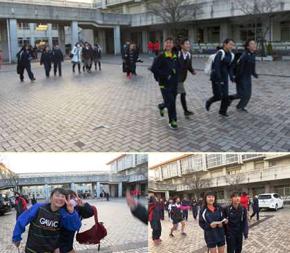 下校の様子です。本日より、完全下校が17:30になりました。帰宅後は、手洗いやうがいをきちんとしましょう。