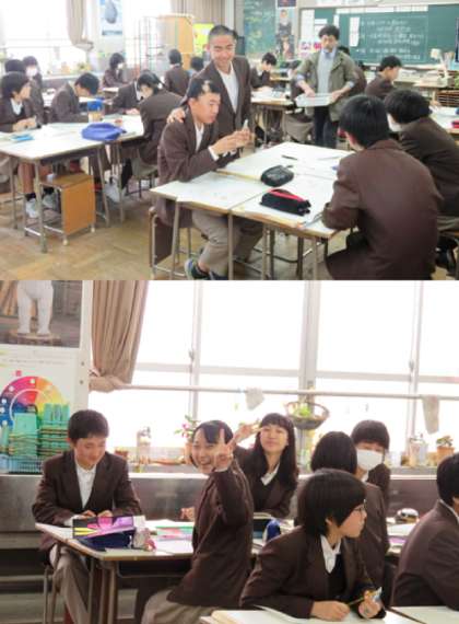 3限の授業の様子です。2年生でもテストの返却や解説が行われていました。上から、2組 美術、3組 国語、4組 数学 です。