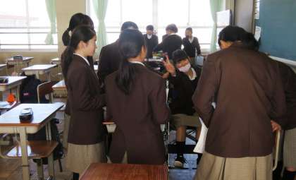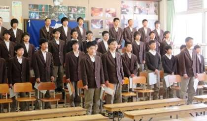 6限、1年生は音楽室と教室に分かれて、3年生送る会の練習をしていました。