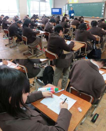 2限の授業の様子です。上から、2組 美術、3組 社会、4組 英語 です。