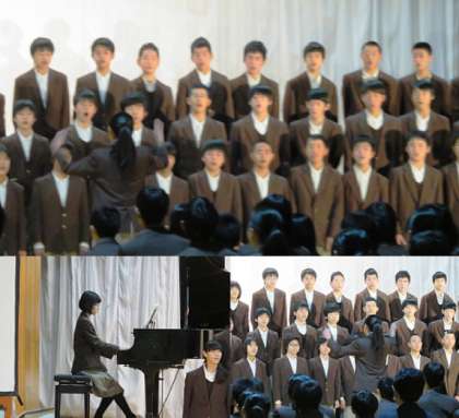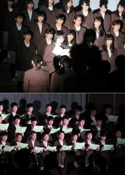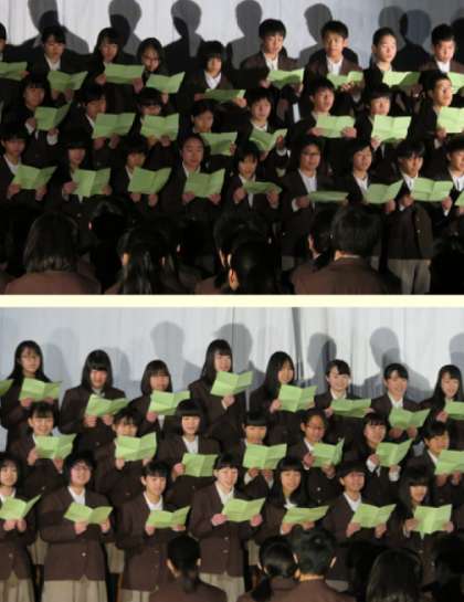 2年生から3年生に向けて発表の様子です。「結〜ゆい〜」が合唱されました。