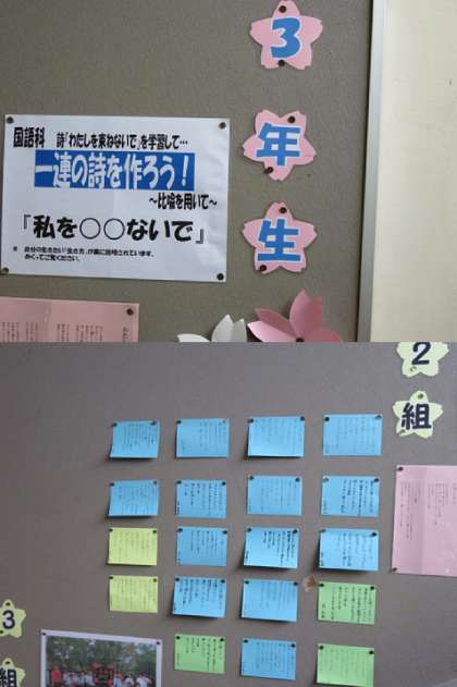 3年の国語科の作品が掲示されていました。
