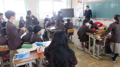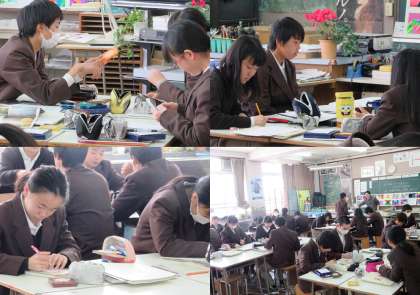 1限の授業の様子です。上から、2組 美術、3組 社会、4組 理科 です。