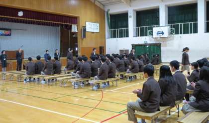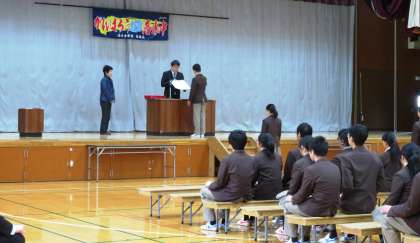 本日の2,3限に、1,2年生も参加しての卒業式の予行が行われました。