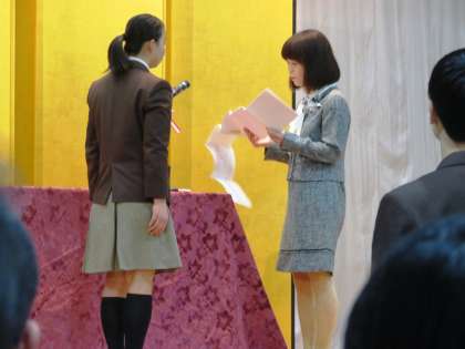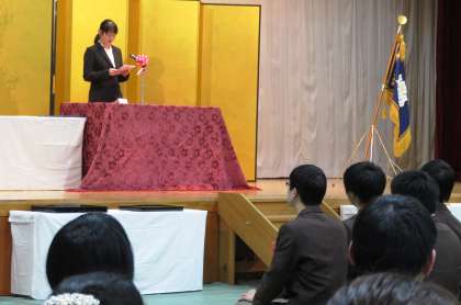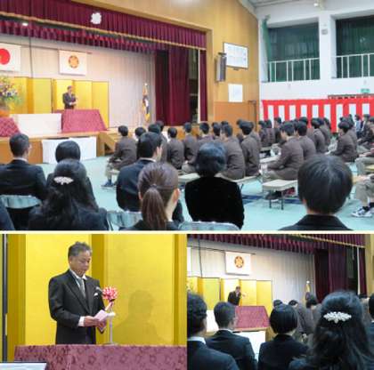 学校長式辞、来賓祝辞、記念品授与の様子です。