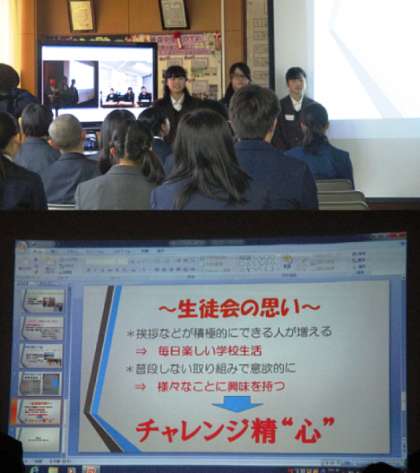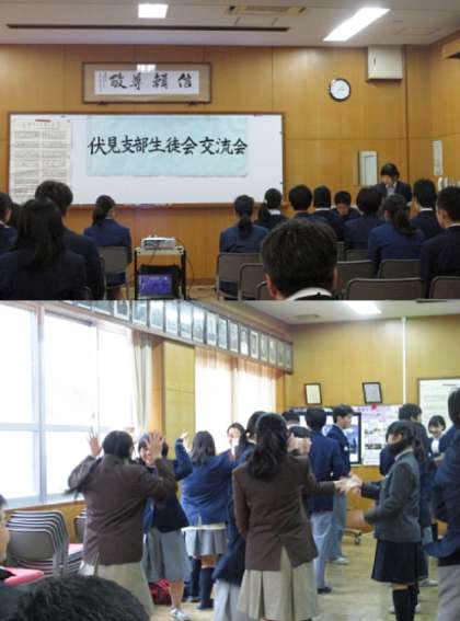 本日の午後、第1回伏見支部生徒会交流会が藤森中学校で行われました。はじめに、自己紹介を兼ねたアイスブレーキングで、子どもたちの交流が行われました。少し和んだところで、各校の生徒会の取組やスローガンなどの紹介が行われました。どの学校も工夫をこらした取組で自分たちの学校をより良くしようという思いを持って報告していました。今日の経験をこれからの生徒会活動にいかしていってもらいたいと思います。